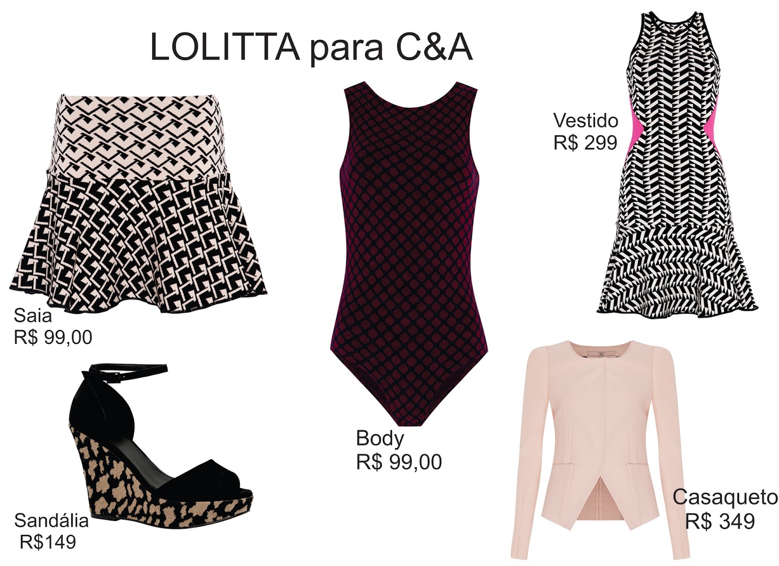 Mas quero falar sobre as  coleções da C&A, que depois dos lançamentos de Kim Kardashian, Maria Filó agora é a vez da marca Lollita da designer paulista Lolita Hannud. Suas peças conhecidas mundialmente pelo incrível trabalho com tricôs de alto luxo em jacquards e bandagens que criam silhuetas super femininas valorizando o corpo da mulher.